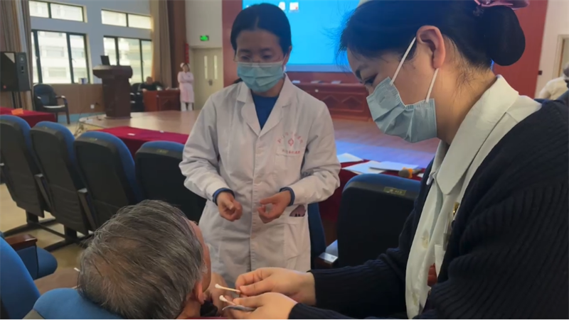 本次活動特別設(shè)置了中醫(yī)特色體驗(yàn)區(qū),現(xiàn)場教授 "八段錦",通過呼吸吐納與肢體導(dǎo)引的有機(jī)結(jié)合,幫助患者增強(qiáng)體質(zhì)。同時,中醫(yī)適宜技術(shù)體驗(yàn)區(qū)提供了耳穴壓豆、穴位貼敷等,直觀展示了中西醫(yī)結(jié)合治療的獨(dú)特優(yōu)勢。