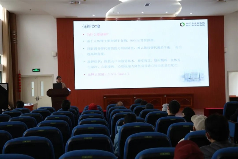 活動伊始,腎病科護(hù)士長劉金霞以《慢性腎臟病人的飲食管理》為題,從“低鹽低脂、低磷、優(yōu)質(zhì)蛋白”三大原則入手,手把手教會大家如何制定個性化食譜。