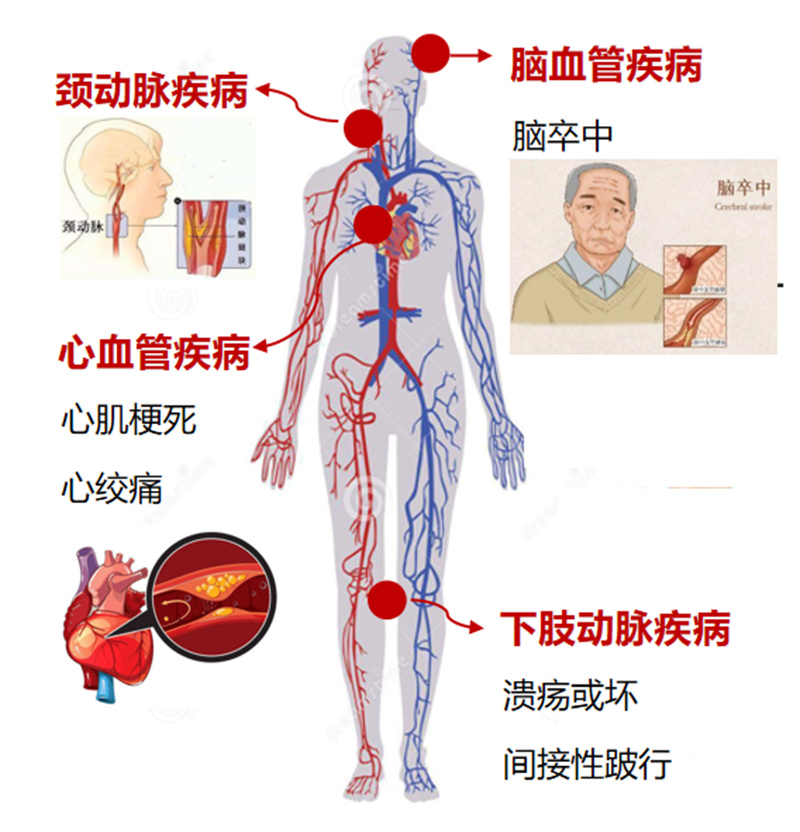 泛血管指人體的血管系統(tǒng),是動(dòng)脈、靜脈、淋巴管等所構(gòu)成的一個(gè)復(fù)雜網(wǎng)絡(luò)。泛血管疾病是以血管病變(其中95%為動(dòng)脈粥樣硬化)為共同病理特征,主要危害心、腦、腎、四肢及大動(dòng)脈等重要器官的一組系統(tǒng)性血管疾病。